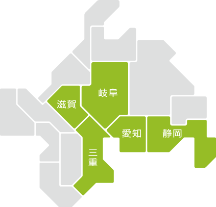 愛知県、三重県、岐阜県、静岡県、滋賀県